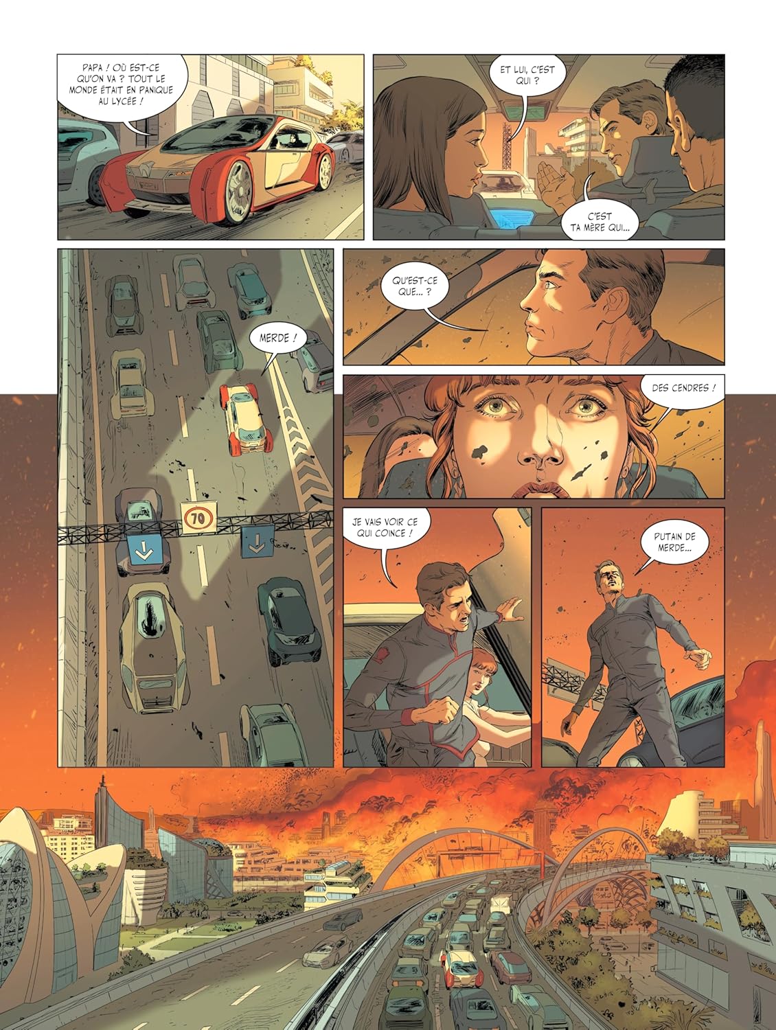 2112. Le monde est ravagé par un climat hostile. Seuls une poignée de privilégiés vivent décemment, protégés par leur Cité dont les murs empêchent les invasions… Mais un jour, la ville fortifiée s’effondre à son tour sous les flammes. Au milieu d’un désert de cendres, un père et sa fille fuient les ruines de ce monde qui se pensait à l’abri de tout, pour tenter de survivre auprès des défavorisés dont la Cité les protégeait jusque-là…